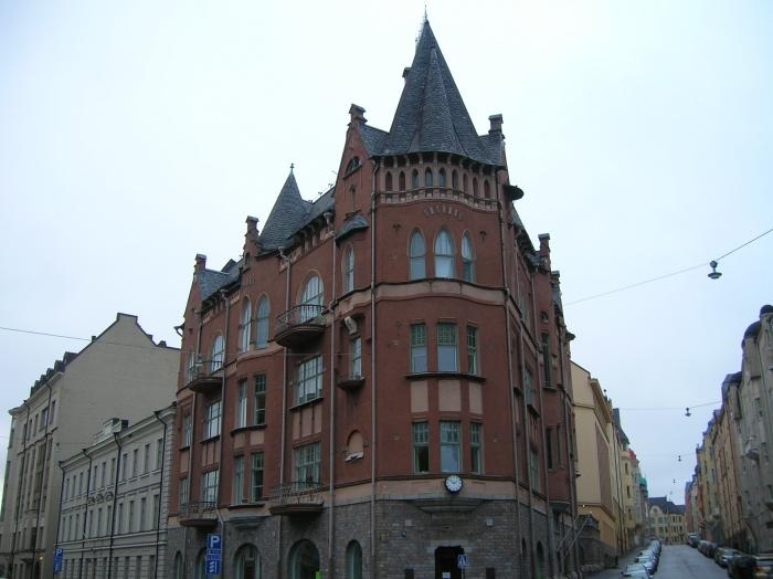 После Пикассо чувствовалась некая опустошенность, но у меня было по программе продолжение банкета модернового. На этот раз я навострился в район Катаянока. Кстати, в августе этого года я отплывал из этого района на Викинге –Лайн пароме и не знал о расположенных совсем рядом волшебствах. Но, не знаю, что было виной, то ли Пикассо, то ли резкий ветер NNW силой 5 балов по шкале Бофорта. Что…не волокете в шкалах Бофорта? В общем пиршества романтического не получилось. Осмотрел только Дом Тальберга, что на Сатамакату ну и так несколько еще шедевров. Где-то на час меня хватило, но я даже обрадовался. Значит мне надо будет обязательно вернуться и закончить свое знакомство с Финским национальным романтизмом в архитектуре Хельсинки. Я пожалуй только половину осилил из статьи Александра Мамлыги (петербургский архитектор) « Национальный романтизм в архитектуре Хельсинки и Тампере». Ссылку я Вам давал выше и примерно 70% из брошюрки «ХЕЛЬСИНКИ – один из красивейших городов Европы построенных в стиле модерн»