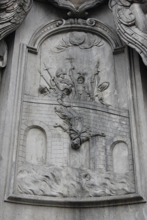 На остове было пустынно и тихо – основной турист еще не пошел. И мы наслаждались тишиной и покоем, которые усиливались туманом. Прошли мимо епископской резиденции, миновали памятник Яну Непомуцкому (да да, тому, которого сбросили с Карлового моста в Праге),