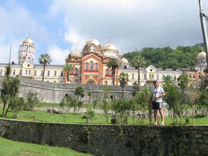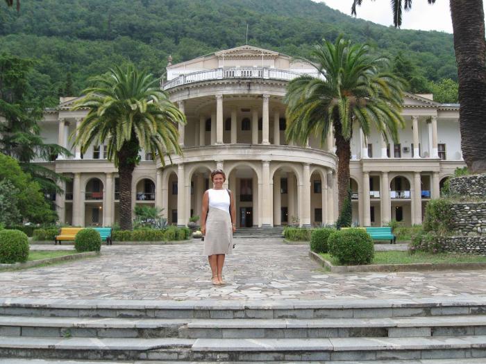 В Гагры просто съедили на рынок и погулять. Произошел курьезный случай. Нам посоветовали погулять в парке, дали ориентир — колонны. Мы увидели колонны и припарковались, удивив тамошнего сторожа. Потом мы поняли его удивление, оказалось до парка мы не доехали, и приняли за парк санаторий для советских партийных боссов :-))) Его территория действительно очень красивая, но парк еще более красивый, но до него мы так и не доехали, потому что испортилась погода.