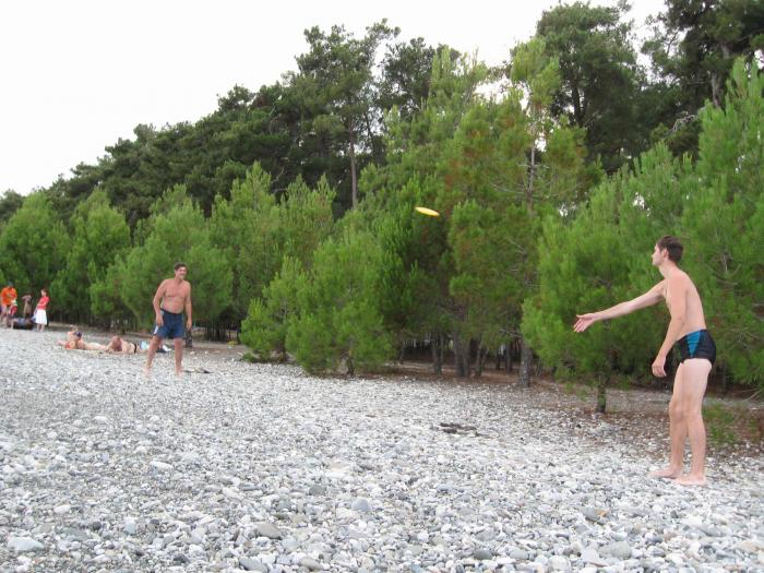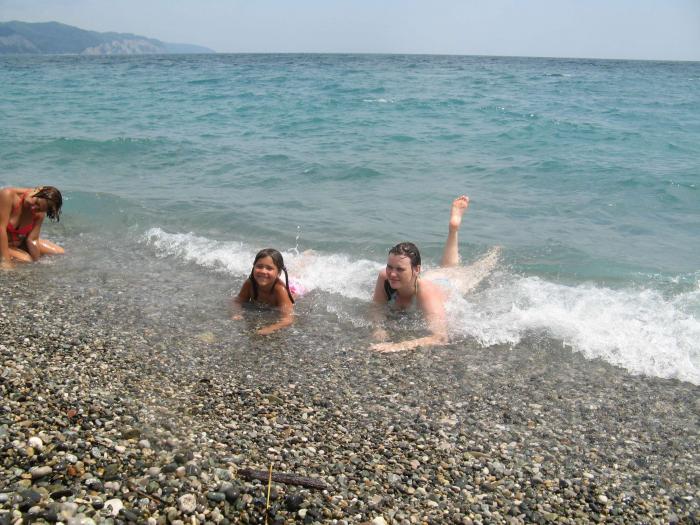 Недаром именно в Пицунде находится госдача советских вождей (кстати мы жили около нее), и чуть повыше в горах есть еще дача Сталина (правда на экскурсию мы туда не съездили). И на самом деле, жили мы в поселке Лдзаа, в 4 км от Пицунды, и ходили на дикий пляж, вдоль которого и идет аллея с соснами, и к пляжу подходит сосновый молодняк, в котором приятно спрятаться от палящего солнца и дышать морским, смешанным с хвойным воздухом! Море здесь было теплейшее и чистейшее, дети из него просто не вылезали! Не то что в Турции, где на море их вытаскиваешь со скандалом, потому что они хотят сидеть только в бассейне! Так что чудесное море окупило все недостатки сервиса!