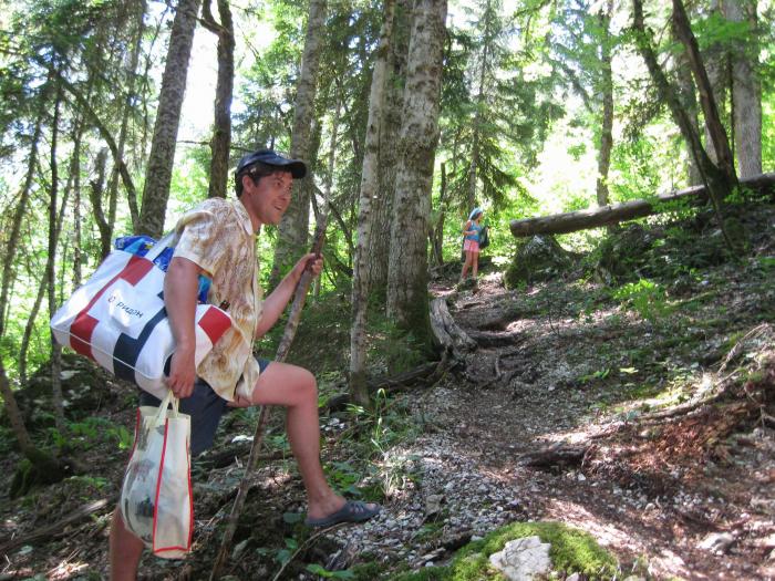 На озере Рица нам не повезло, за неделю до нас прошел сезон дождей, и озеро Рица в своем великолепии нам не удалось увидеть, оно было серое :-(( Разочарование видимо было так написано на наших лицах, что нам посоветовали сходить на Малую Рицу. По словам «пославших» нас туда людей, тут недалеко, километра 3-5. Да, это немного для прогулки, только они не сказали что идти надо по крутой горной тропинке вверх. Учитывая то, что на нас были сланцы, а не кроссоки, двое детей и девушка в положении, дорога была очень трудной. Шли больше 2-х часов.