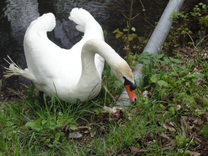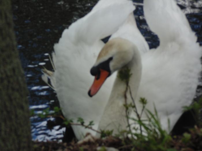 К нам плывет величественный лебедь.