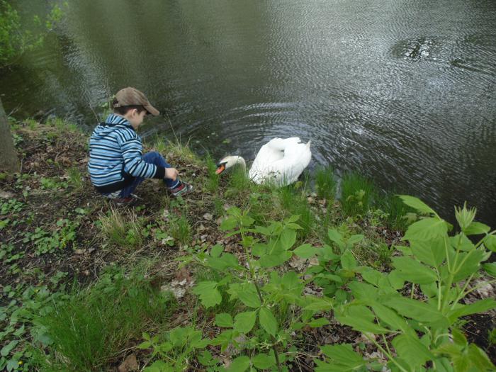 Лебедь, видно, знаменит. Нам навстречу люди шли, спрашивали, где лебедь? Мы.Там, идите и покормите. Вдруг… топот. Мы только белые попки оленей увидели и какашки.
