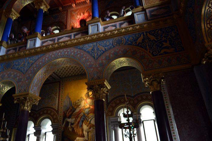На входе выдают аудиогиды, в том числе и на русском языке. Внутри замка фото и видео съемка запрещена. Но я как настоящий папарацций снял несколько кадров без вспышки:
