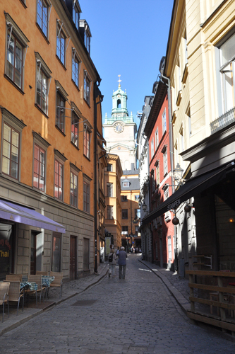 Спустились на набережную, взяли билеты на паром и приплыли в Старый город – Gamla Stan. На обычный паром по стокгольмской карте скидок нет (только на обзорную паромную экскурсию), поэтому покупали за полную цену (взрослый 40SEK – 160 руб, старший ребенок – 25SEK – 100 руб., младший – бесплатно). Несмотря на то, что после Скансена все устали, прошлись по улочкам старого города.