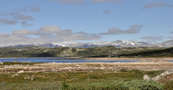 Походив немного здесь, в 13 часов мы двинулись в сторону Осло. Изначально планировалось, что мы остановимся в кэмпинге рядом с водопадом и посмотрим окрестности. Но оказалось, что больше здесь нечего смотреть и мы оперативно поменяли свои планы, отправившись в Осло. Таким образом, на город у нас получался целый день вместо половины. По дороге в Осло нам предстояло перейти перевал. И дорога опять пошла в гору. Интересно было наблюдать изменение природы за окном. Сначала были привычные уже нам горы и хвойные леса. Постепенно горы стали пропадать, а деревья становиться ниже, потом еще и кривыми, а после пропали совсем. Мы въехали в царство камней, поросших мхом, снежных вершин на горизонте и голубых блюдец воды. Очень необычно и красиво!