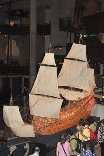 Полтора часа бродили по музею Васса. Музей огромный – 7 этажей. На каждом этаже раскрывается одна из тем экспозиции: кораблестроение, жизнь Швеции того времени, подъем затонувшего корабля, восстановление лиц затонувших людей, макет палубы, на одном из последних этажей была компьютерная игра, позволяющая смоделировать, как затонул корабль. Очень впечатлили манекены людей, воссозданные с обнаруженных скелетов. Выглядят, как живые и даже становится не по себе, когда на них смотришь. Аудиогида снова нет.