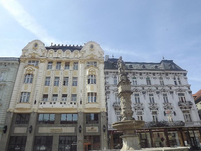 Это памятник городскому сумасшедшему красавчику Наци.В отличие от вымышленных персонажей, прототипом Красавца Наци послужил реальный человек по имени Игнац Ламар. Лишившись рассудка на почве безответной любви, бедняга бродил по улицам в цилиндре и фраке, напевал песенки, дарил встречным дамам цветы и говорил комплименты.Наконец наша прогулка привела нас к Главной площади. Она является центром города, его сердцем.На ней находится Старая Ратуша и Фонтан с защитником Братиславы-рыцарем Роланда