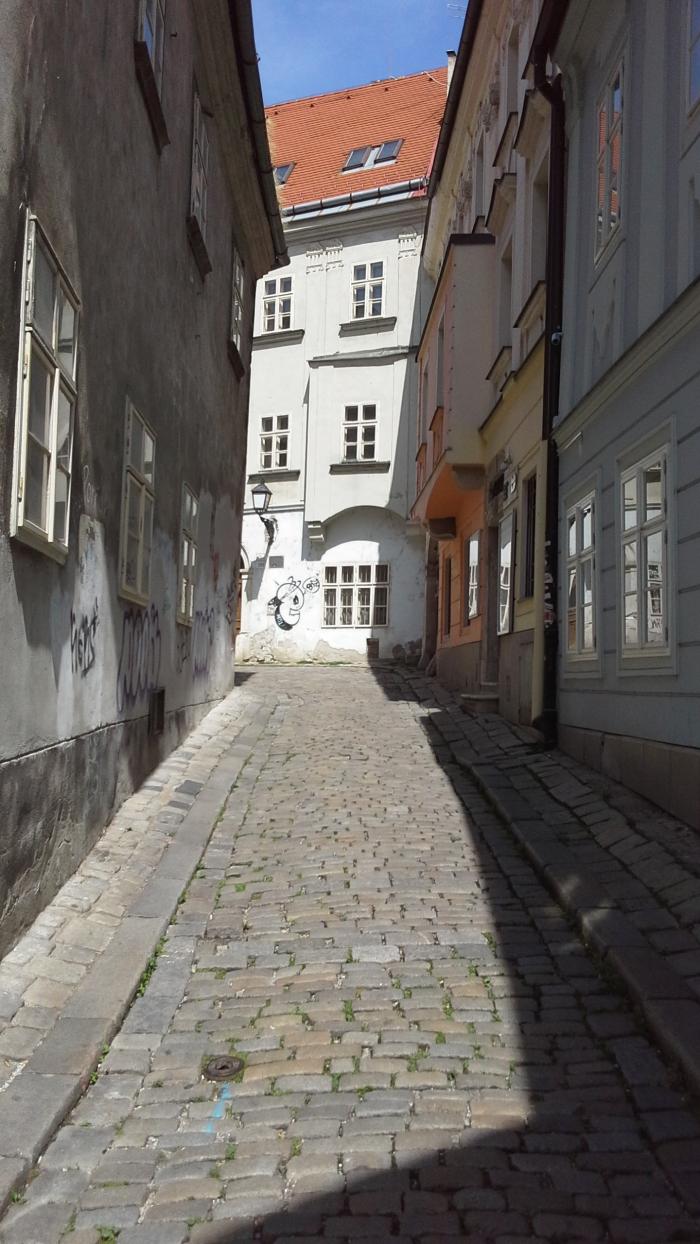 После осмотра Града мы спустились вниз к Старому городу.Наверху возвышается Братиславский Град.А вот перед нами улочки Старого города