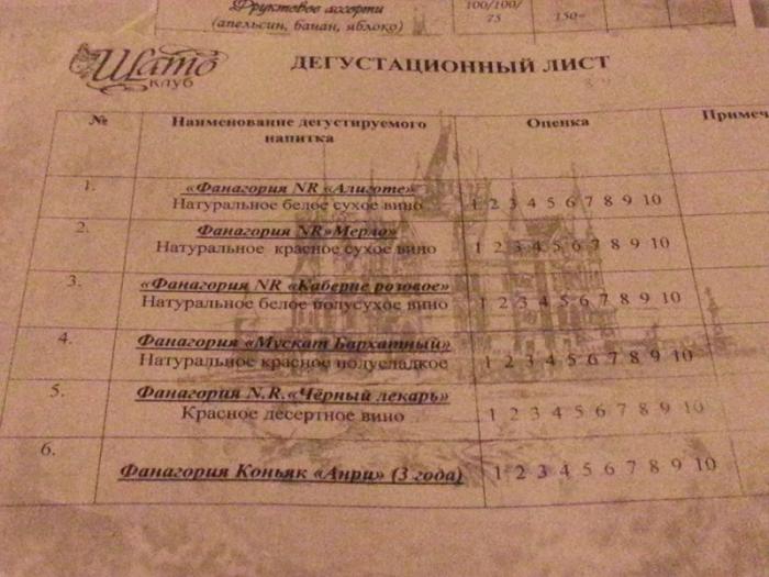Тем временем, наступил вечер. Нашим экскурсоводом вновь была Яна, а большой автобус на этот раз был битком набит публикой лет 50-60. В винный двор ехали молча, мы вообще очень переживали, что нам будет скучно среди взрослых дяденек и тетенек. Однако, к счастью, наши мрачные ожидания не оправдались. «Шато» расположено около г. Железноводск, время в пути составляет около 40 минут. Профессиональный сомелье около часа рассказывал обо всех представленных видах вин (их всего 5), о том, как правильно хранить и перевозить спиртные напитки, учит правильно пить коньяк. На столе фрукты, сырная тарелка и вода, помимо этого предлагается меню, где представлены салаты и горячие блюда. После дегустации – танцевальная программа, а также можно продолжить банкет, купив в баре понравившийся напиток. Лучшему танцору вечера турфирма подарила бесплатную дальнюю поездку (Домбай, Эльбрус или Чегем). Домой мы возвращались за полночь, автобус гудел, как улей: пел, делился впечатления и продолжал дегустацию.