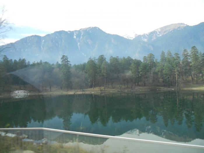 С Еленой же мы остановились в каком-то подворье, где нам подали остывшие чебуреки и дешевый кофе. Первой остановкой был Чегет, предполагался подъем на эту гору, но узнав, что работает только первая очередь подъемника, а цена вопроса остается прежней, мы предпочли не подниматься, а нормально отобедать. Там же был и рынок, где я дешево накупила шали и паутинки.
