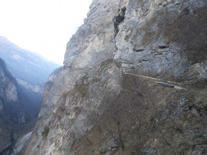 и сохранившийся кусок Великого шелкового пути. Дорога здесь настолько узкая, что в те незапамятные времена, когда здесь встречались караваны, они не могли разъехаться. Того, кто проедет дальше, определял жребий. Груз проигравшего сбрасывался в пропасть. Сейчас, конечно, автомобильную дорогу расширили, (ведет она в тупик – в одно из черкесских поселений (за перевалом уже Грузия), но все равно машины разъезжаются совсем впритык – жутко страшно.