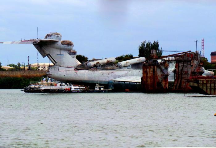 Экраноплан «Лунь» впечатляет огромным размером, его хвост виден от самого начала набережной.