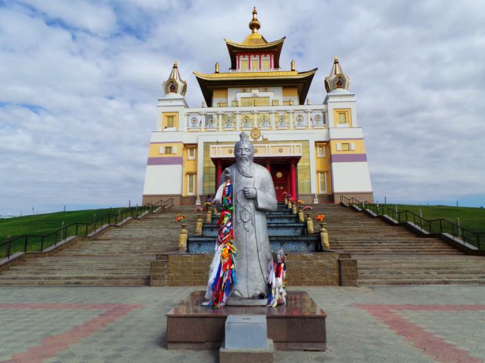 Поужинов на трассе «искандером» в отличном кафе «Каспий» довольные и сытые мы направились в столицу Калмыкии-Элисту.Пролетев вечерние калмыцкие степи остановились на ночлег.Утро началось с посещения крупнейшего буддийского храма республики — центрального хурула «Золотая обитель Будды Шакьямуни» (Бурхн Багшин алтн сүме), в котором расположена самая высокая в Европе статуя Будды.