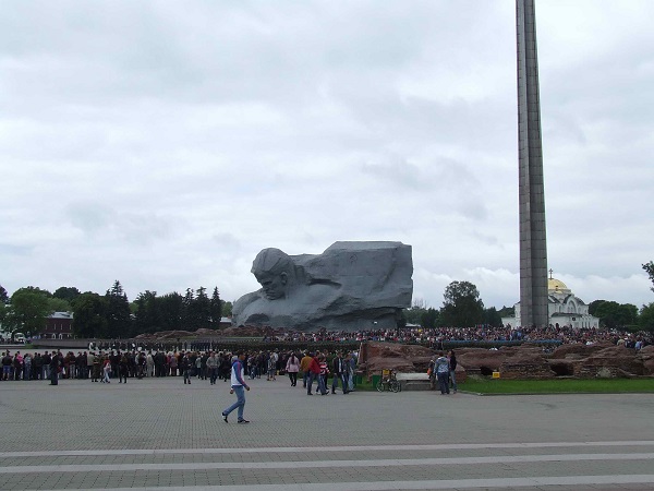 В Брестскую крепость таксист нас завез с такой стороны, чтобы можно было пройти ее кругом – и выйти воротами, ближними к гостинице (это 2 остановки от нашего Интуриста). К сожалению, в крепости проводилась в эти часы военная присяга для всех окрестных гарнизонов—куча военных, родственников, центр перекрыт-заполнен, а толпы всегда раздражают, отвлекают от созерцания и проникновения… Но общее впечатление мы получили.