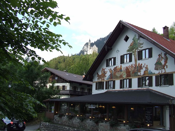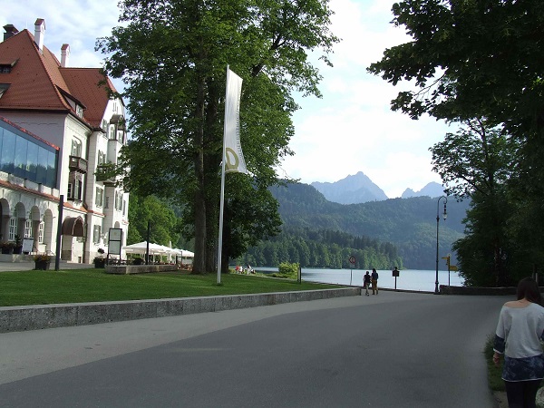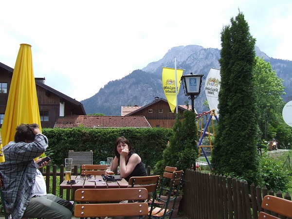 Но мы с Дашуней все ж лоханулись, Диму вовремя не покормили! Причем пришлось идти 2 км пешком по лесу до работающего ресторана в Хоэншвангау – рядом с замком Хоэншвангау и озером Альпзее – (а иначе и не побывали бы!…), слушать всю дорогу возмущенное сопение и потом ждать, пока он окончательно расслабится. Муж мой за рулем может ехать сутки, болтать и балагурить без устали, но полчаса пешком, да еще на голодный желудок — это грозит стертыми пятками в любой обуви, прочими потертостями, ломотой, дурным настроением надолго… Пронесло, ситуация в обратную сторону разрядилась автобусом до отеля за 1 евро…