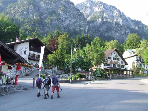Рассчет мой оказался верен – час до замка, 15 минут там. 30 минут назад. Вверх по пологой наклонной дороге, что начинается от замка Хоеншвангау, а вниз – по горным лестницам. Это было совершенно чудесное утро. В альпийском лесу – рассвет, туман на лугах, цветы, перезвон колокольцев на коровах, птицы что-то замечательно высвистывают, белки шустрят. И туристы, оригиналы немецкие, – по асфальту в горных ботинках с палками…