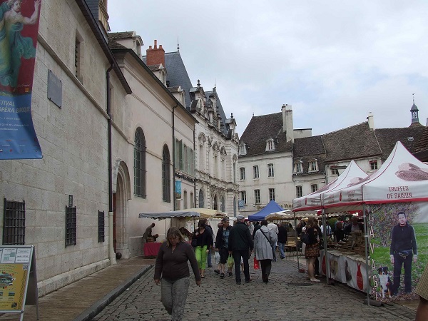 В госпиталь мы не попали – жаль, я читала в инете, что там проводят интересные аудиоэкскурсии в виде записанного спектакля. Однако, мы даже вход в него не нашли – всюду стены, как в любой уважающей себя психушке… А может, не очень и искали, погода была хмурая, времени не много… В итоге просто побродили по центру. В целом, городок маленький, уютный, с серыми, в ставнях, невысокими старинными домами. В кафе сидят престарелые солидные французы в шляпах, попивают бургундское. Никакого пива. Здесь столица виноделия. Прошлись, накупили вкусностей на рынке, поехали дальше, жуя и радуясь жизни. Дима даже заявил после очередного куска сырокопченой колбаски с орехами, что Франция, наконец, повернулась к нам лицом…
