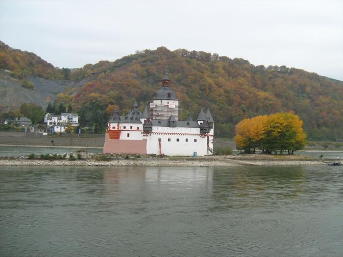 На следующий день, 3 ноября, нас повезли вверх по Рейну в г. Кауб, где на острове Фалькенау находится замок Пфальцграфенштайн.