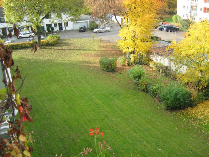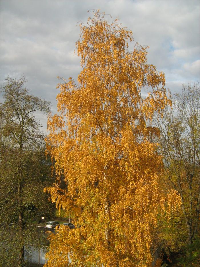 Представляю, сколько у нас наставили бы машин на эту лужайку. А вот роскошная берёза перед балконом.