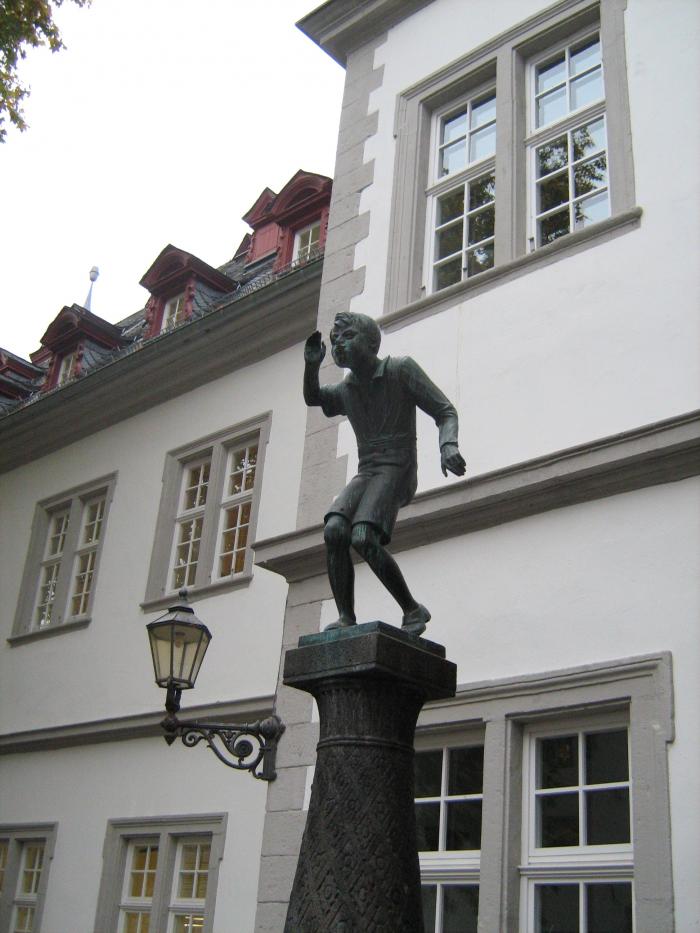 В Кобленце у местной Ратуши есть интересная скульптура «Плюющийся мальчик» бронзовая фигурка, которая каждые несколько минут плюется водой.