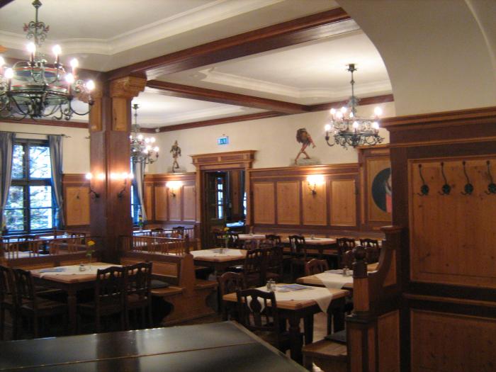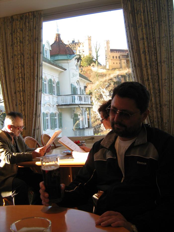 Между экскурсиями было время пообедать. Обедали в ресторане при отеле «Schlosshotel List & Jägerhaus». Довольно дорогой ресторан, но здесь туристический ажиотаж. Обед из трёх супов, двух бокалов пива и чая стоил 24 евро. Пиво местное «König Ludwig Dunkel» (Король Людвиг тёмное).