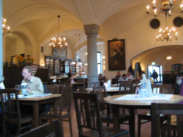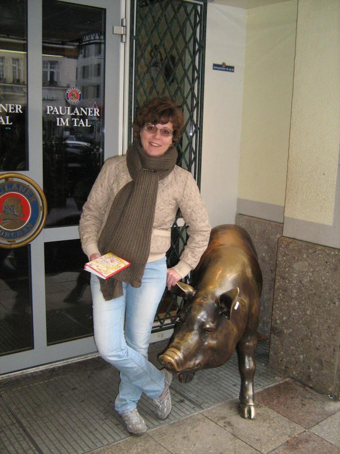 После обустройства в номере пошли искать место ужина. Пошли наугад по Häberstrasse, через пять минут вышли на Капуцинерплатц и «о чудо» в доме номер 5 Kapuzinerplatz видим ресторан пивоварни Пауланер (Paulaner Bräuhaus), одного из столпов баварского пивоварения. В ресторане нам предложили пробник из трёх видов пива по 0,1 (3.80 евро). Мы остановились на пиве Томас Цвикки (Thomas Zwicki), сыну лимонад под названием велосипедист (radler), а три горячих блюда оказались свиными колбасками в разных видах и под разными названиями. Но что ещё можно пожелать на ужин в первый вечер в баварской столице, не французское же вино с пиццей. Ужин обошёлся в 47 евро. Очень спокойное заведение, правда, несколько мрачноватое.