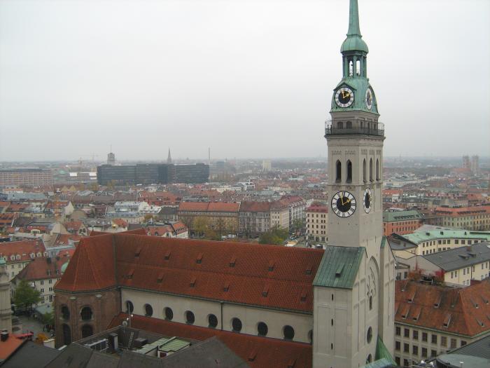 Церковь Святого Петра, называется «Старый Петер» Это самая старинная церковь Мюнхена. По легенде, а может и фактически, этот храм существовал на этом месте ещё до основания города, т.к. монахи давшие название городу, возможно, обосновались именно здесь. Старая ратуша