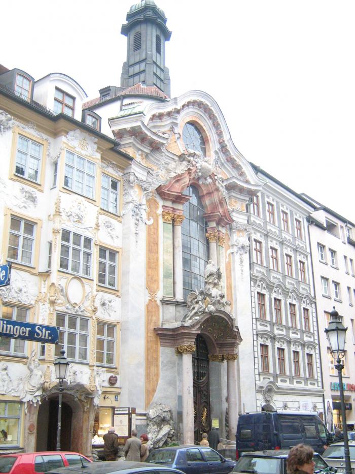 Это одна из главных эмблем города. Построена в конце 15 века и является одной из самых больших церквей Германии. В информационном центре, находящимся в Новой ратуше купили путеводитель и карту Мюнхена и далее с их помощью осматривали город. По улице Тал вышли к воротам Изартор 14 века.