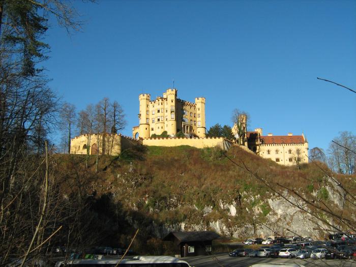 На месте этого замка в 12 веке была крепость рыцарей Швангау. Затем она была разрушена и в 1836 году была реставрирована королём Баварии Максимилианом 2. Использовался замок в основном как летняя резиденция — охотничий дом.