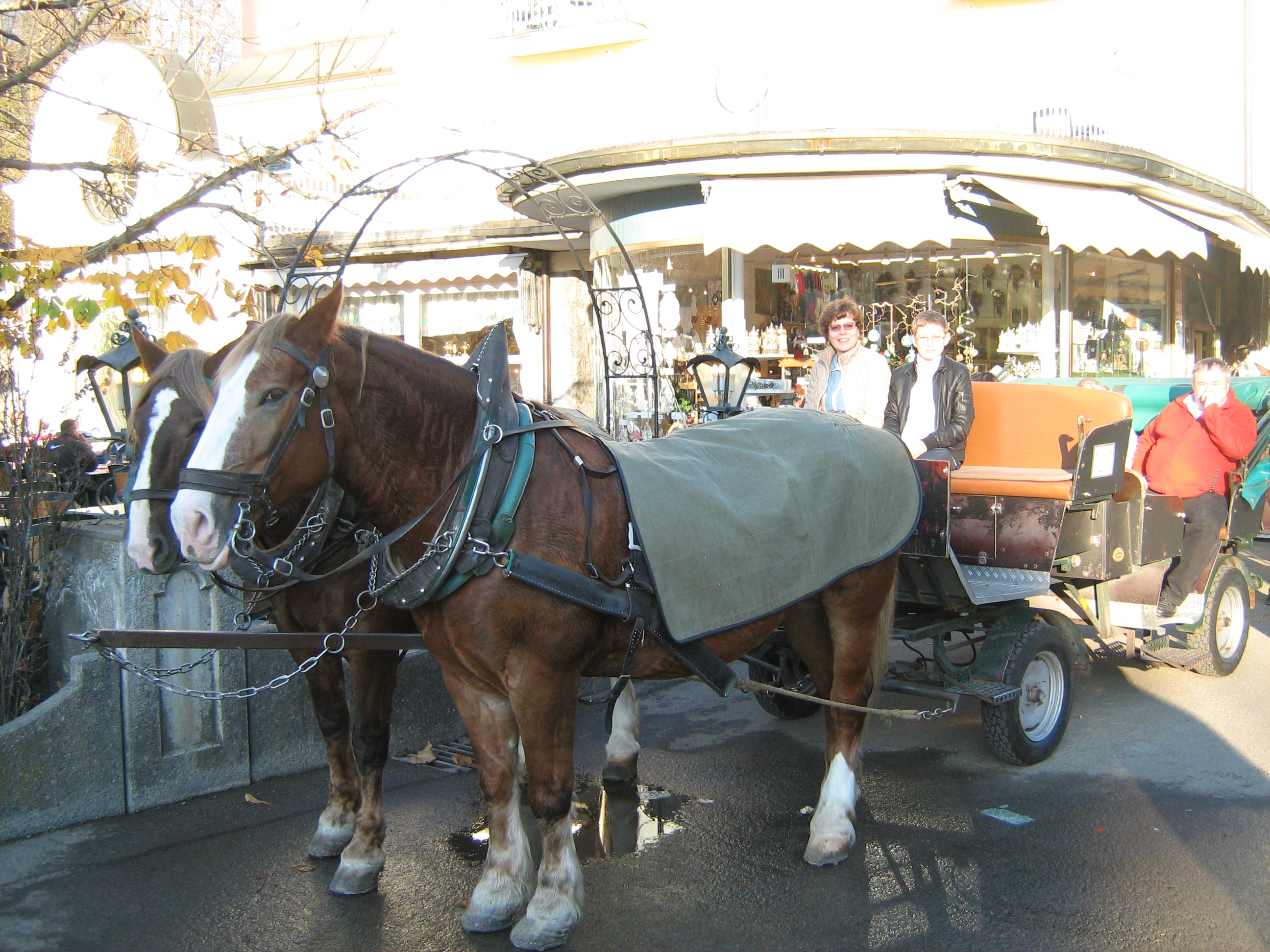 К замку Нойшванштайн можно подняться на автобусе, на повозке запряжённой лошадьми и можно пешком. Мы решили на лошадях. Стоит это, насколько я помню, 6 евро.