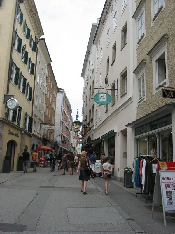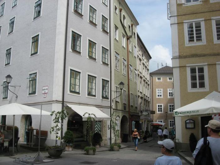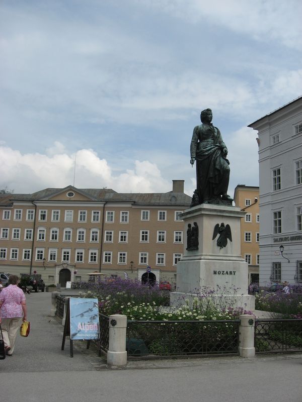 Судя по всему, в Зальцбурге не все дороги ведут в Рим, но все — к памятнику Моцарту. Так и нас сия закономерность не миновала. Тут все пронизано его памятью — улицы в его честь, массы сувениров, даже в рекламе упоминают. Вобщем, Моцарт умер, но город за его счет живет и процветает :)