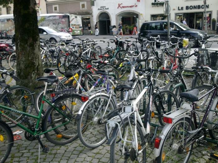 Также как в Берлине, массы велосипедистов. Для них выделены свои полосы, светофоры и стоянки: