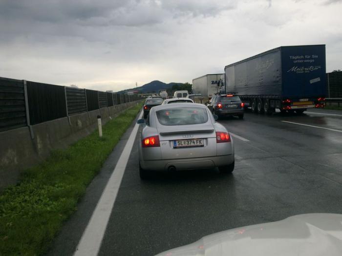 Но мы не любим возвращаться тем же путем, каким добирались, поэтому решили проехаться по автомагистрали. Выехали из города, и… встряли. Двигаемся как пешеход, что происходит — непонятно. Первые минуты удивления сменяются раздражением. Блин!