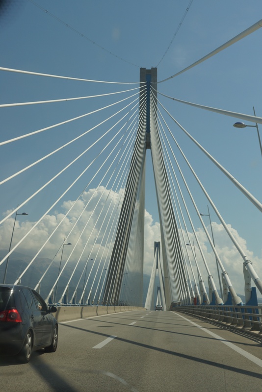 Следующая наша точка уже Пелопоннес, городок Захаро. На полуостров попали, проехав по мосту Рион-Андирион, красивый, но проезд дороговат-13,5 евро в одну сторону.