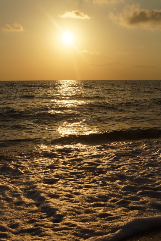Вот такие закаты в Захаро, бесконечный пляж, из мельчайшего песка, ступаешь будто по муке, но волны, дети купались не всегда.