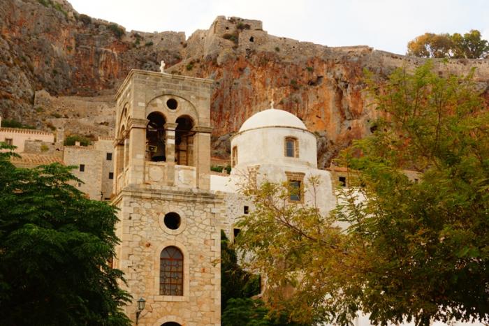 Остановились в Монемвасии, . До острова-крепости пешком, минут 20, но мы поехали на машине. Ее можно оставить у входа в крепость