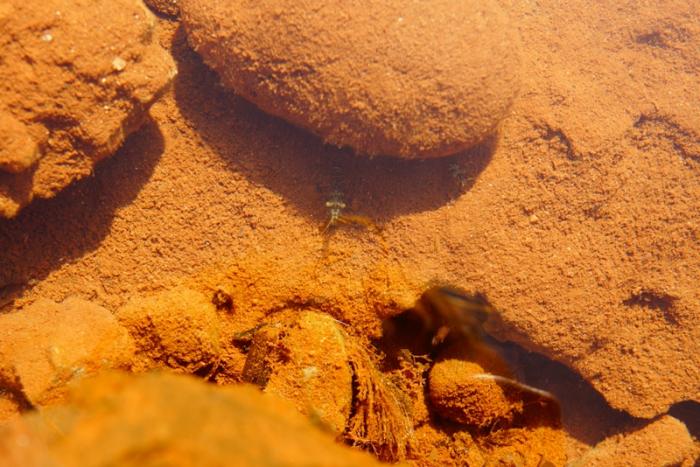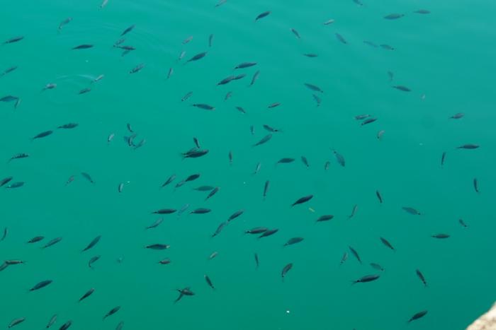 Вода необычного цвета, такое ощущение, что купаешься в бассейне.