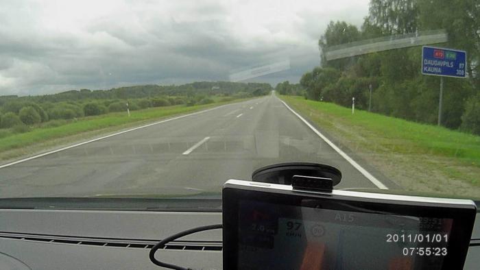 Известно, что незнакомая дорога без попутных авто, да ещё при первом проезде страны – гарантия соблюдения скоростного режима ( +19 вне населенного пункта – это максимум). Разумно ехать со скоростью самых быстрых местных водителей, однако первые 300 км по Латвии и Литве — не было не то что быстрых, не было никаких. Возможно, сказывается стоимость бензина: