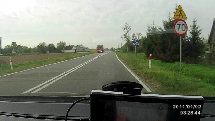 В Польше с 23:00 до 05:00 максимально разрешенная скорость в населённом пункте повышается с 50 км/ч до 60 км/ч. Движение в любое время суток – с включенным ближним светом ( внимательно с ходовыми огнями, как слышал, за ближний свет их не считают).