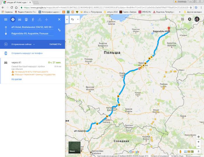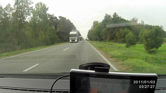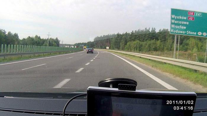 156 км от Августова до выезда на скоростную магистраль S8 E67 в Острув-Мазовецка были пройдены за 2 часа 15 минут со средней скоростью 69 км/час.