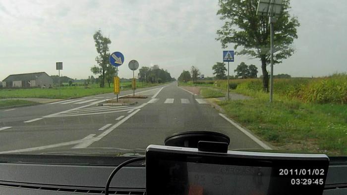 Далее появляется пешеходный переход, с автономным питанием от солнечной батареи. На достаточном от него удалении разрешается движение со скоростью 90 км/час.