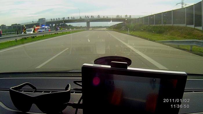 Пролетев оставшиеся 50 км до границы, за пару километров до неё, были свидетелями работы польской полиции при ДТП. Полосы, на которых случилось происшествие, перекрываютя с обеих сторон за 1-2 км: