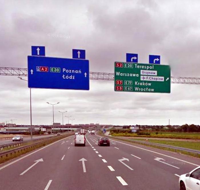 При выезде с «кольцевой» Варшавы, правильный съезд – на Вроцлав, хотя он в стороне от нашего пути: