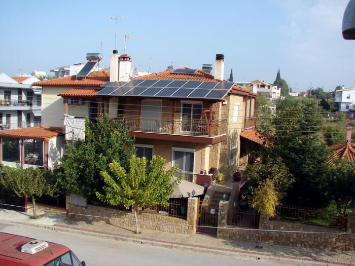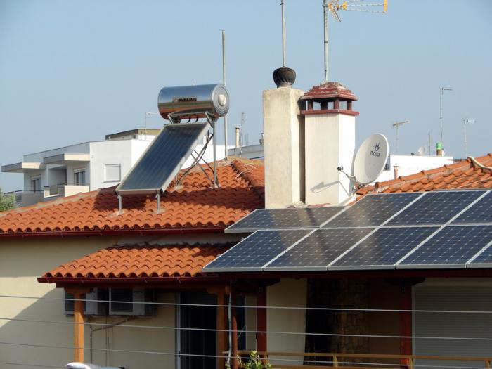 По всей Греции на крышах домов довольно часто можно увидеть солнечные батареи и установки для обогрева воды.