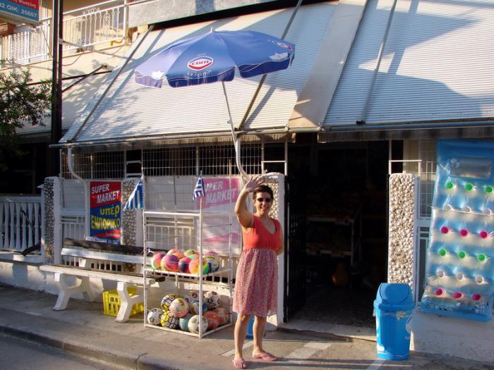 На Тасосе –возле одноименного порта-города есть Masoutis, аж с подземным паркингом, здесь 40.775228, 24.700067, и несистемные магазинчики в городке. В Хризи Аммудия/ Chrisi Ammoudia на Тасосе 40.727014, 24.755830, где мы останавливались на три дня, – всё, как в Дионисио, — например, банка пива в магазинчике – 2,5 евро.