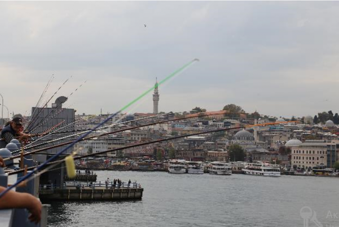 Ощущение мистики этому невероятному месту добавляли мрачные черные коты монументально не реагирующие на толпы туристов снующие мимо них. Словно это и не коты вовсе, а те самые папские легаты, которых десять веков назад здесь прокляли. Стамбул город рыбы. Галатский мост это процесс *от* и *до*. Он в два яруса, верхний ярус ощетинился по краям удочками, которые непрерывно тягают рыбу, всех форм и размеров что только возможны в этих водах.