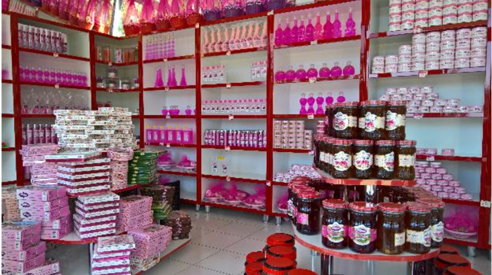 Центральные улицы, магазины с продукцией из роз каждые 100метров, мне сложно представить рентабельность этого бизнеса при такой переполненностью предложения. Но ладно магазины, в разных местах ещё и припаркованы автобусы в виде торговых точек. Я понимаю что автобусы мигрируют в течении дня торгуя в разных местах, наверное заполняя зоны где магазины расположены чуть реже чем каждые 100 метров. И сложно представить их общее количество. И повторюсь, скоро все они станут предлагать ещё и продукцию из лаванды. Некоторые магазины уже робко выделили уголки для лаванды. Есть сироп из лаванды, мыло, ну и пакеты с сушенной травой. Лукума пока нет…..)))
