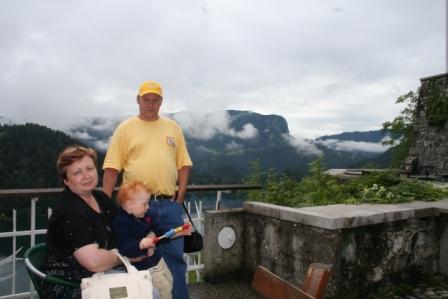 Несмотря на дождь, мы отправились на прогулку, поскольку поняли, что дождь, начавшись утром, часам к четырём заканчивается. Озеро Бохинь находится рядом. Доехав до него, полюбовались окружающими нас Альпами, красивыми долинами, сделали несколько фотографий и отправились обратно.