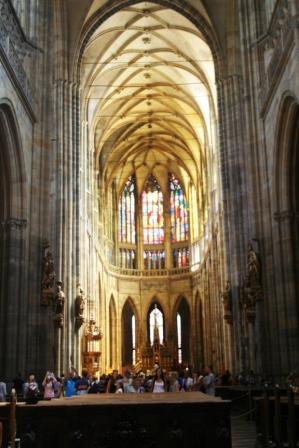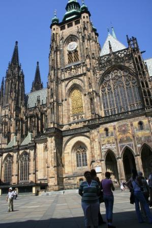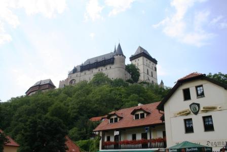 По дороге в замок, нам рассказали, что это главная резиденция короля, даже не замок, а целый град, в котором хранились самые важные сокровища, а также копия короны св.Вацлава, которую приказал изготовить Карл. Корона (оригинал) имеет магическую силу. Одевали её на голову короля только во время коронации. Сам обряд построен так, что давал возможность новому королю впасть в состояние, которое позволяло увидеть будущее и настоящее государства. В короне большое количество самоцветов: от маленьких до огромных размеров (по ювелирным меркам). Внешне корона очень проста, но её сила не в пышности, а в магических свойствах. Выносится корона 4 раза в 100 лет, постоянно хранится на черепе св.Вацлава. Позже был сооружён саркофаг над черепом, где она по сей день и хранится.